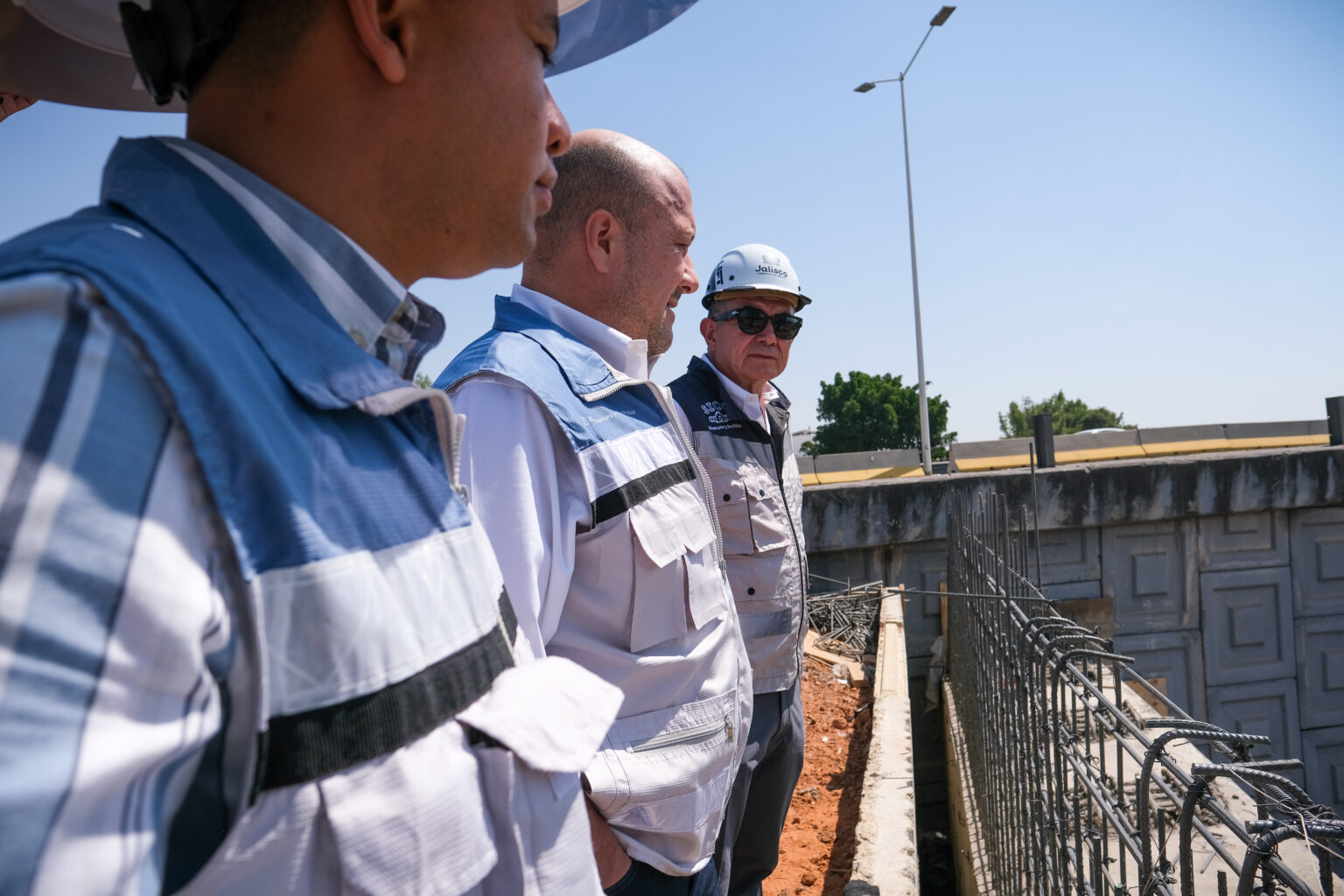 Durante el recorrido, Alfaro estuvo acompañado por el titular de la Secretaría de Infraestructura y Obra Pública (SIOP), David Zamora Bueno. Juntos inspeccionaron los trabajos en la estación «Los Conejos» de Mi Macro Periférico rumbo a Tonalá, que actualmente registra un avance del 30 por ciento.