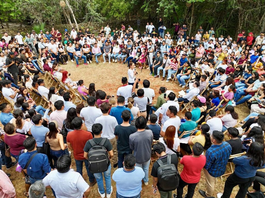 En el Museo de la Ciudad de Bécal, acompañada por Layda Sansores y Rommel Pacheco, la precandidata insistió en que los jóvenes son el presente de México y llamó a fortalecer las bases de la Cuarta Transformación.