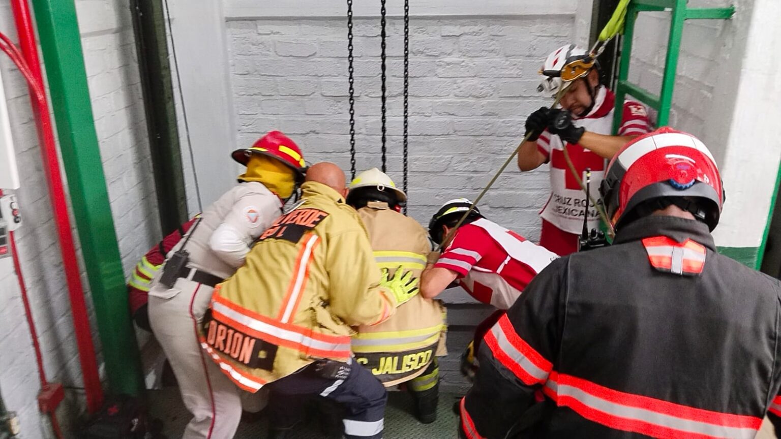 Dos masculinos resultaron con fracturas de extremidades, al desplomarse un elevador, instado en una bodega del mercado de Abastos de Guadalajara.