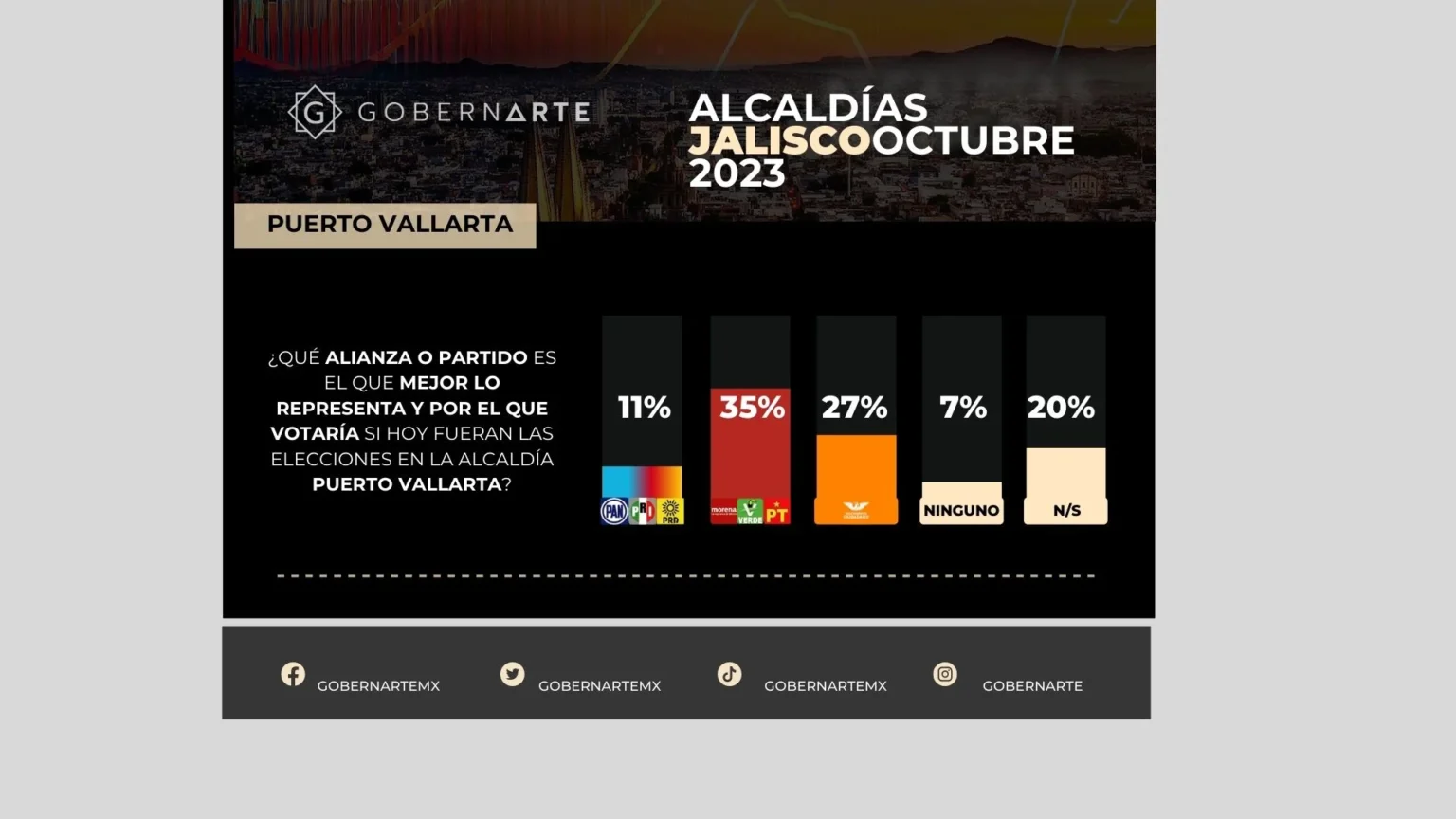 Según una reciente encuesta realizada por la empresa Gobernarte en octubre de 2023, Morena se perfila como el partido favorito para la reelección, obteniendo un sólido 35% de apoyo entre los votantes. En contraste, el Partido Movimiento Ciudadano (MC) cuenta con un 27% de respaldo, mientras que la alianza de partidos se ubica en un 11%.