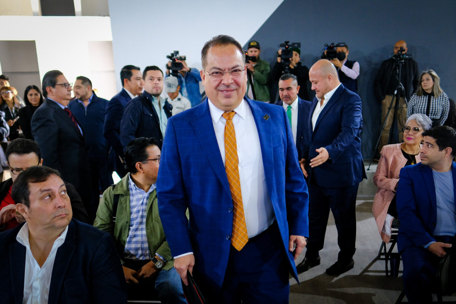 El mandatario estatal estuvo acompañado por Daniel Espinoza Licon, titular del Supremo Tribunal de Justicia y por Fernando Martínez Guerrero, presidente del Congreso local.