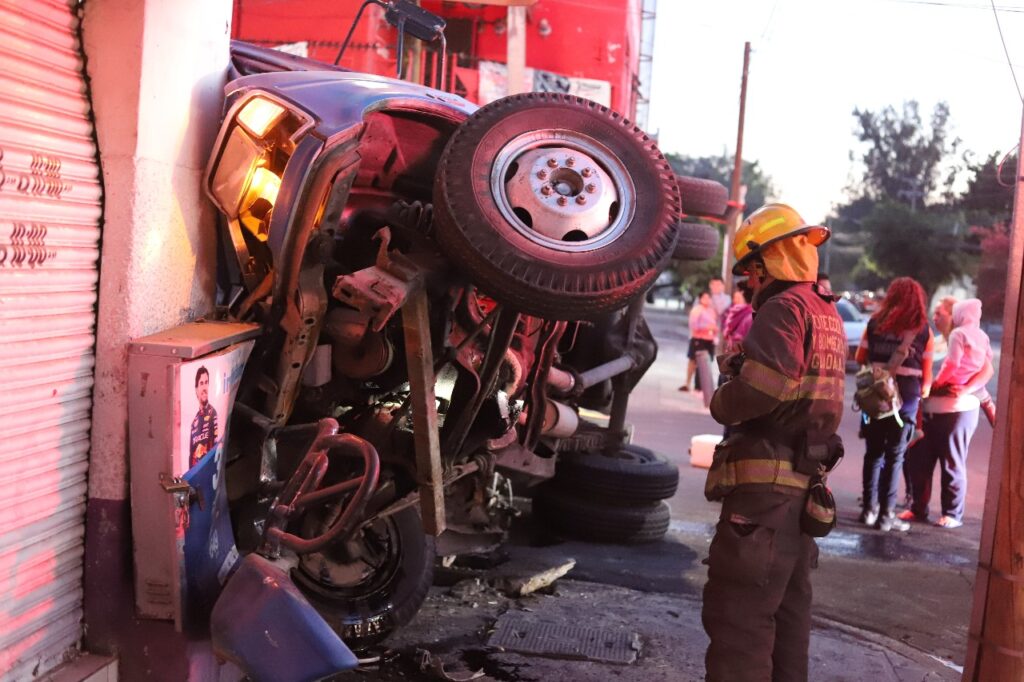 Oficiales de la base cuatro de los Bomberos de Guadalajara, respondieron a un llamado de incendio en un predio, sólo para encontrarse con un choque y volcadura en la intersección de las calles Manuel M. Ponce y Andrés Bello del oriente de esa ciudad capital.